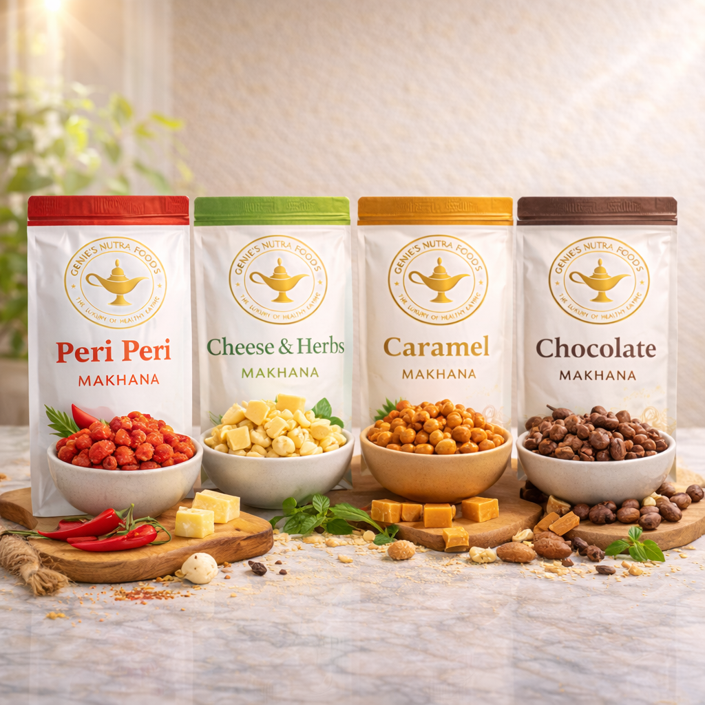 At Genie’s Nutra Foods, our purpose is simple to transform everyday snacking into a refined, mindful experience. We carefully source and grade premium makhana and ingredients to deliver products that balance purity, taste, and uncompromised quality.
