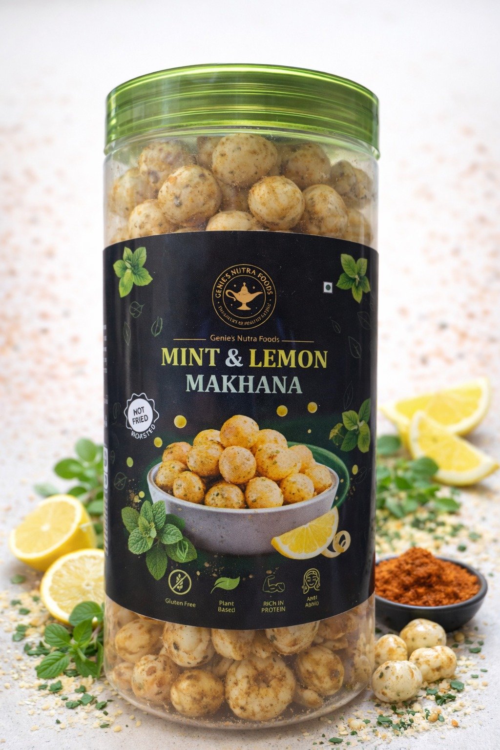 Mint & Lemon Makhana is a roasted snack made from premium lotus seeds, infused with refreshing mint and tangy lemon flavours. It offers a light, zesty taste with a satisfying crunch, making it an ideal choice for everyday healthy snacking. Carefully prepared with selected ingredients, it provides a flavourful and lighter alternative to fried snacks.
